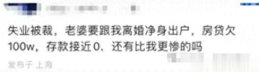 2026年4月12日,上海某互联网大厂被裁职工张伟(假名)在酬酢平台发帖:“清闲第7天,妻子主动提倡仳离,惬心毁灭所有财产净身出户。屋子欠银行128万,银行卡余额不及5000元。还有比我更难的东说念主吗?”