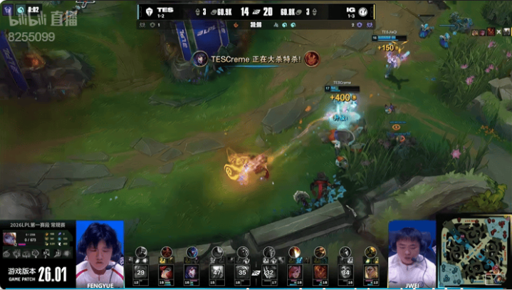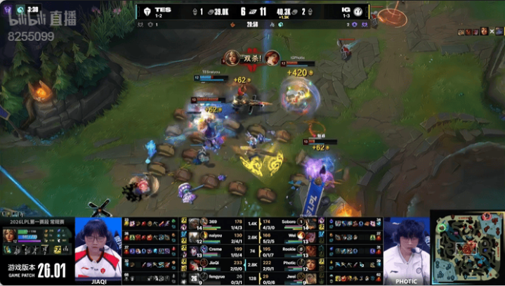 虎扑01月21日讯TES蓝色方,IG红色方