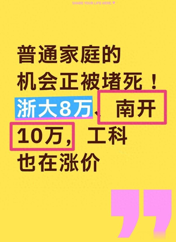 好多世俗家庭的父母和孩子一看账单,心都凉了。往常总说“学问改动庆幸”“考上名校就有出息”,当今看着动辄八九万、十几万的膏火,再想想糊口费、住宿费,世俗工薪家庭、农村家庭要掏空些许积存?有东谈主说,这样涨下去,世俗家庭的飞腾契机果真要被堵死了。今天我们就好好聊聊这件事:膏火为什么涨?对世俗家庭影响有多大?我们世俗东谈主又该如何靠近?