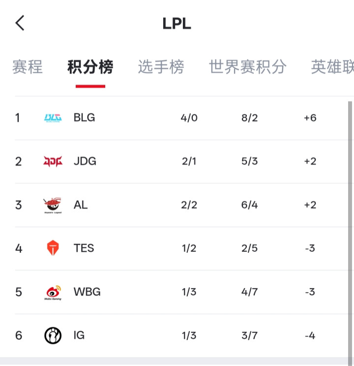 (各位JRs亦可参照文末指引,前往虎扑英雄联盟赛事页查看实时更新的完整LPL战队排名)