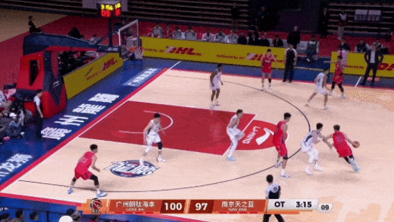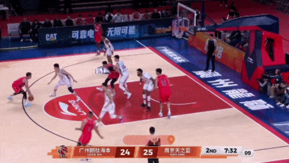第四节,南京把分差缩小,广州需要有人站出来的时候,郭艾伦挺身而出,他不断利用突破撕扯南京的防守。