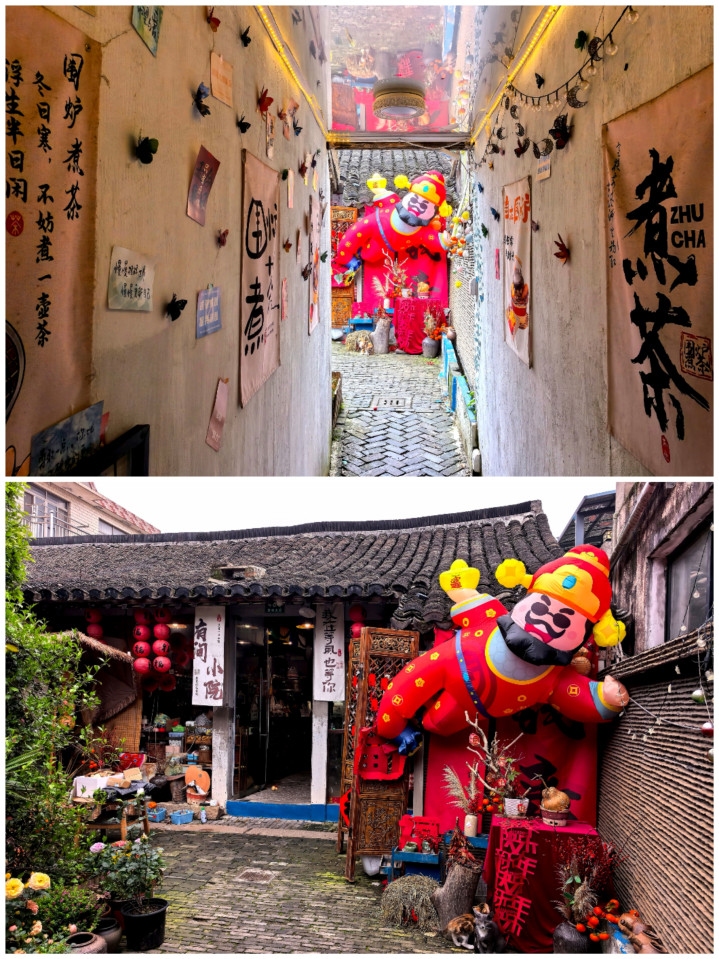 沿着市河冉冉走,眼下的石板路被岁月磨得温润光滑。两侧的老屋子大多是前店后宅的方法,一楼的小店开着半扇木门,门口摆着几盆绿植,墙上画着彩色的涂鸦,挂着写着“夏有冷风冬有雪”的红色布幡,连空气里齐飘着几分慵懒的焚烧气。途经一家茶楼,廊下挂着写着“茶”字的灯笼,藤椅上坐着喝茶的老东说念主,慢腾腾地摇着扇子,连时光齐在这里慢了下来。