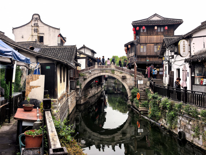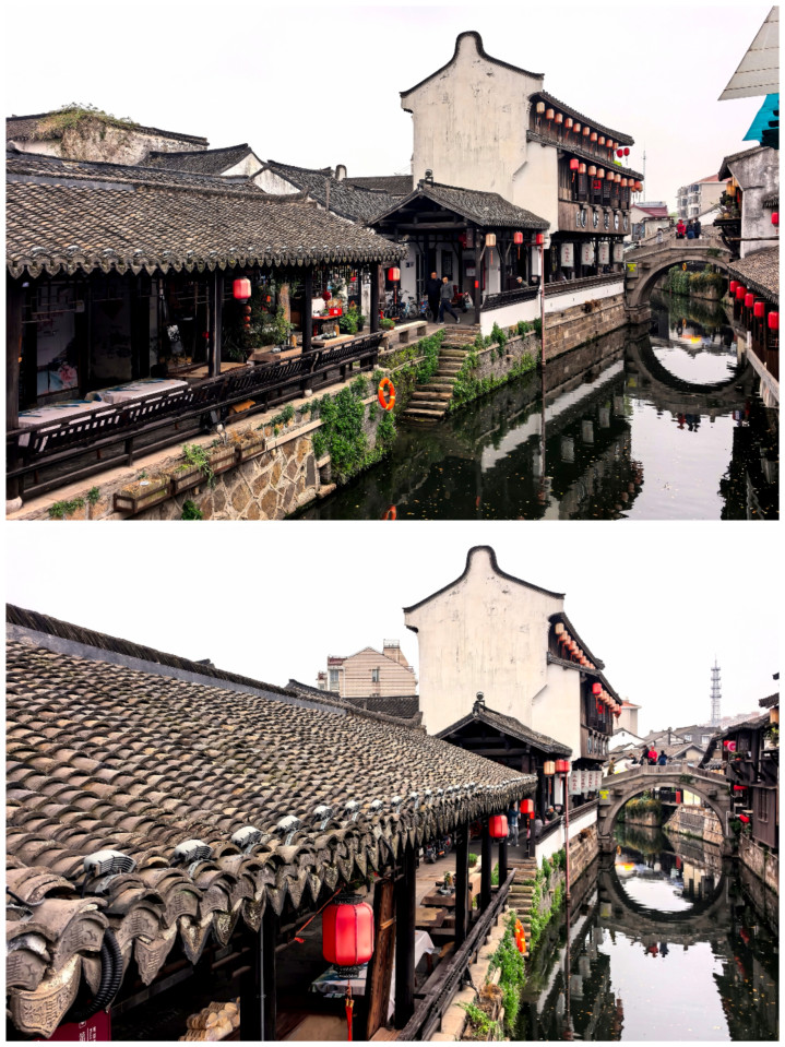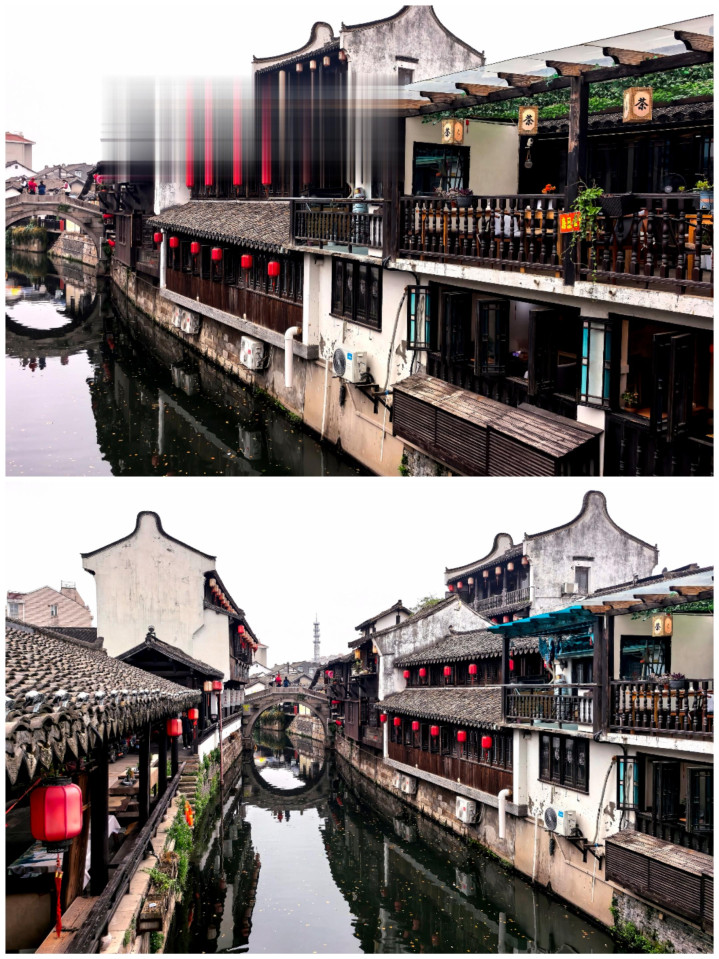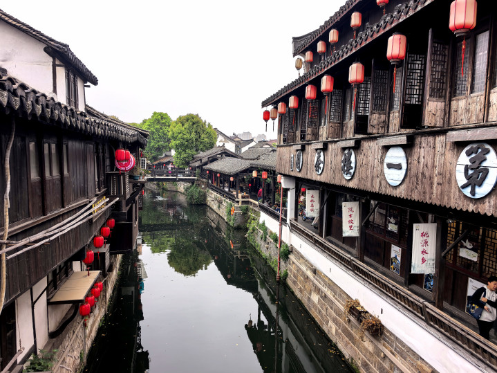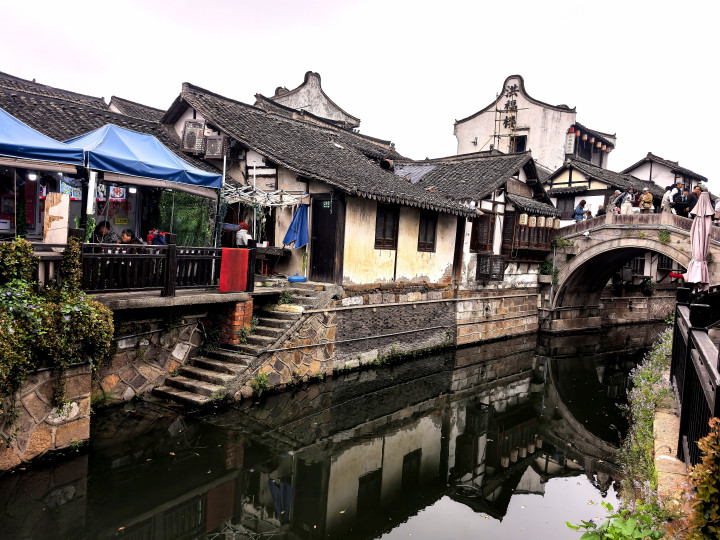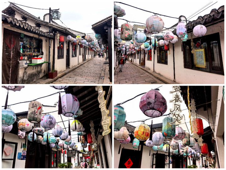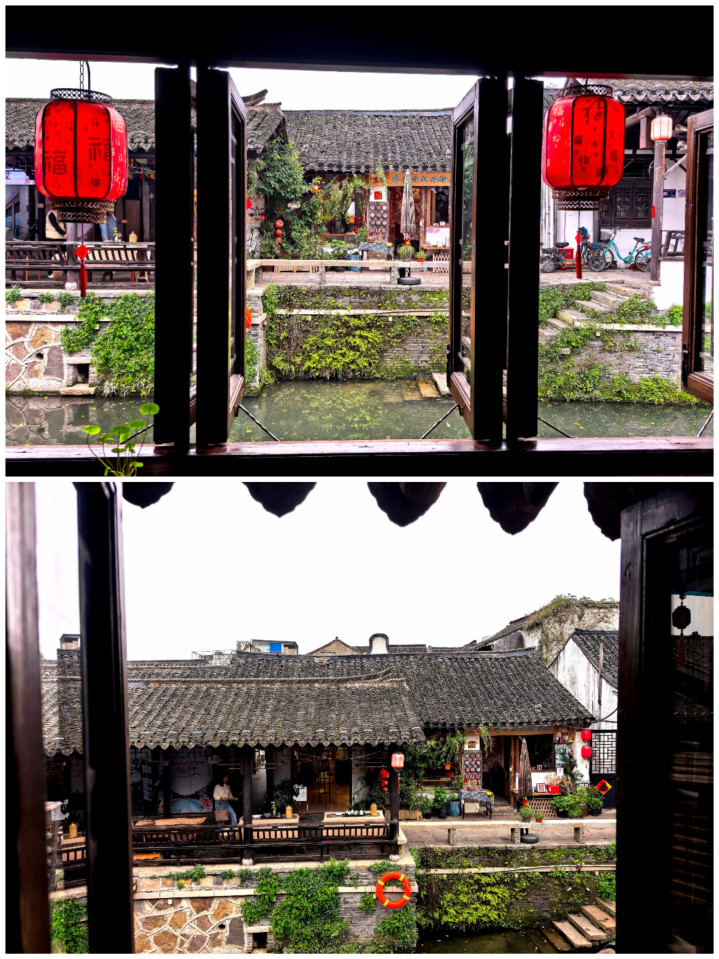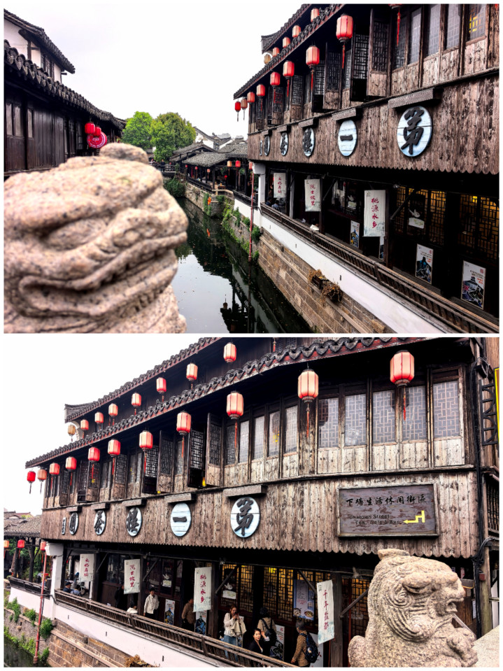 踏在古镇的石板路,观赏着穿镇而过的市河,河水泛着乌绿,反照着两岸的板屋与红灯笼,微风拂过,动荡轻晃,把廊檐下的灯笼、雕花的窗棂齐揉成了一派温文的光影。