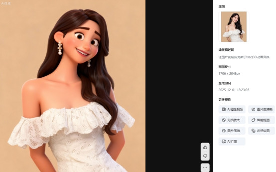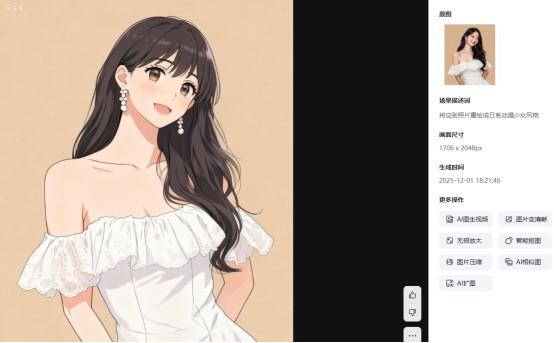 AI 生成结果后,如果对局部效果不满意,可以继续通过补充指令进行调整,比如修改色彩、亮度或细节表现,让动漫风格更加贴合预期。