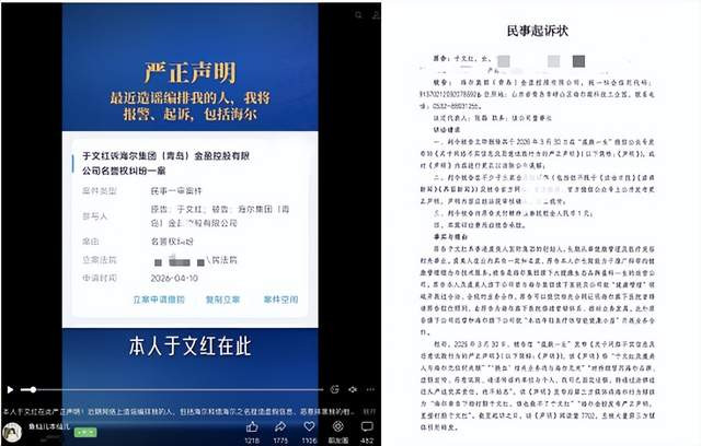 4月10日,香港虞好意思东说念主国外集团独创东说念主于文红的一则视频,将海尔集团再次推优势口浪尖。她文书已肃穆向海尔金控拿起民事诉讼,案由是名誉权纠纷。她在视频中直言:“通盘谣喙王人为天方夜谭。”