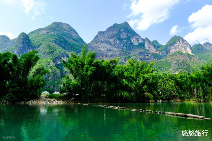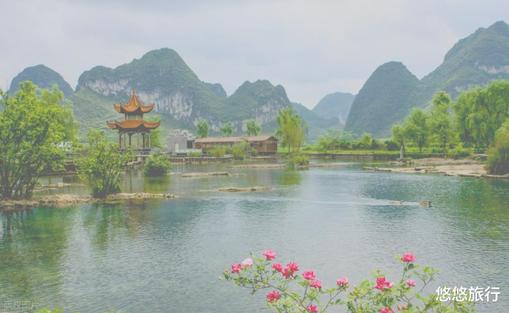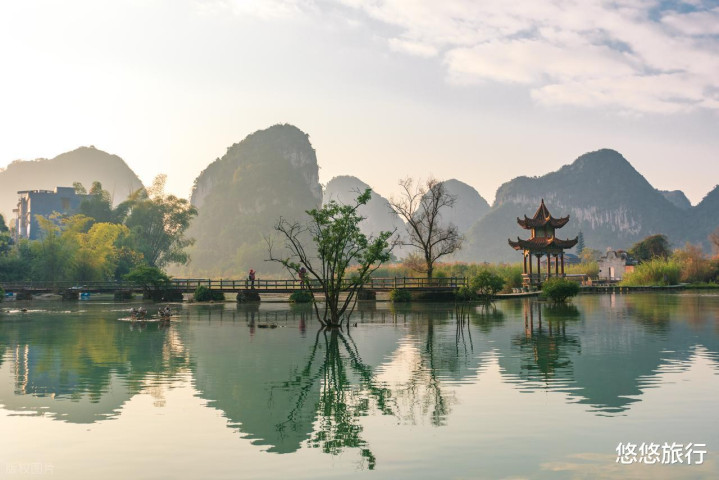 泉水清得能看见底下的水草摇曳,喀斯特峰林之间的墟落、原野一派安逸。山上有个不雅景台,鸟瞰统共鹅泉宛如一幅水墨画。石桥分布,静静感受鲜艳山水,就依然很欢娱了。