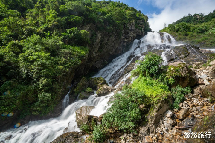 南恩瀑布就在路边,水从公路卑鄙过,风里羼杂水汽。云海日出不雅景台,每天都能看到云海翻腾流动。