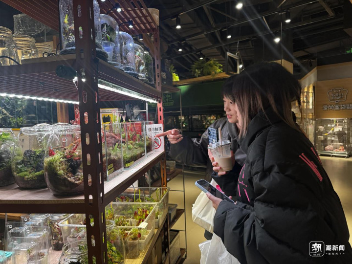 蔚冉缓慢花鸟市里,市民正在不雅赏生态缸。唐逸涵摄