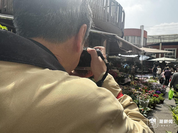 朱建新在岚灵花鸟市场拍照眷恋。唐逸涵摄